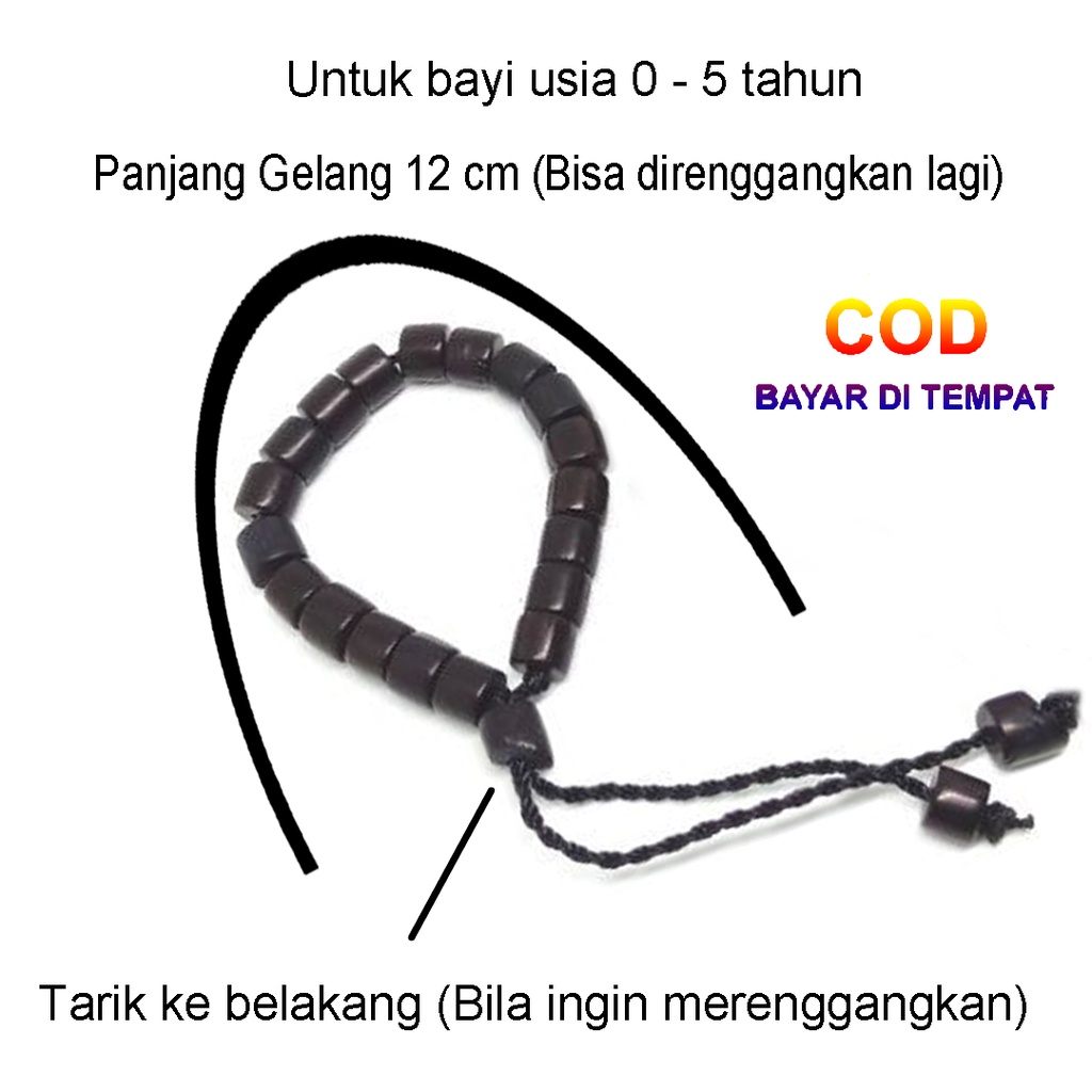 Gelang kesehatan kaukah asli Panjang gelang 12 cm (Bisa direnggangkan lagi) Untuk bayi dan anak usia 0 - 5 tahun