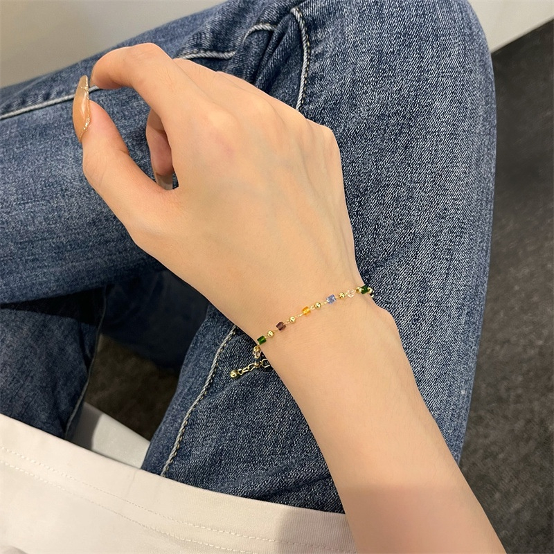 Detail 【COD】Gelang Manik-Manik Kristal Bentuk Bunga Warna-Warni Untuk Wanita Kalung Rantai Klavikula Manik-Manik Kristal Warna-Warni Handmade
