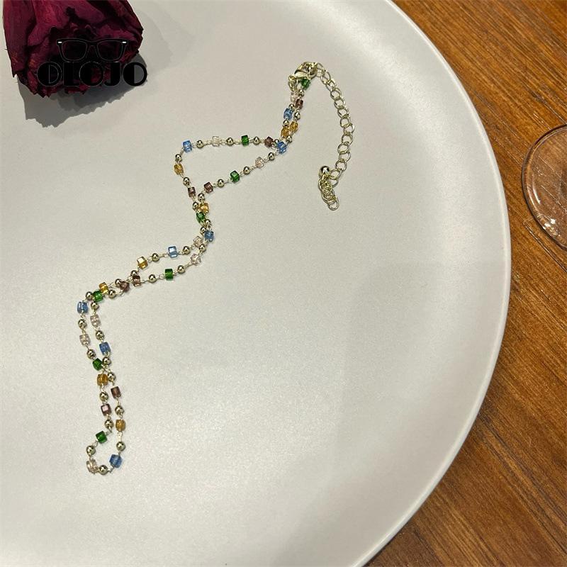Aksesoris Fashion > Kalung > 【COD】Gelang Manik-Manik Kristal Bentuk Bunga Warna-Warni Untuk Wanita Kalung Rantai Klavikula Manik-Manik Kristal Warna-Warni Handmade