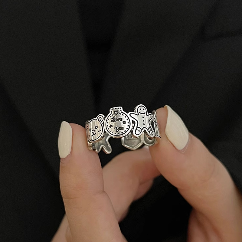Cincin Gingerbread Grafiti Man Desain Dapat Disesuaikan Pembukaan Wanita Tanpa Cincin Memudar Tanpa Cincin Memudar