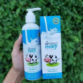 barang sesuai gambar•si : 240 ml. BPOM : NA 18160103317. Merk : Hanasui. Product : Milky lotion.