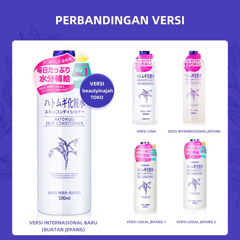 Hatomugi Skin Conditioner 500ml, toner + essence yang terbuat dari ekstrak jali-jali berfungsi untuk mendinginkan, menyegarkan dan melembabkan kulit.