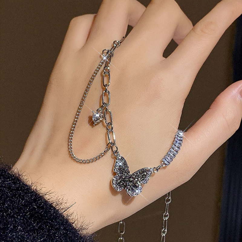 Kalung Kupu-kupu Hitam Rantai Klavikula Keren Cahaya Kelas Tinggi Desain Kupu-kupu Hitam Zirkon Mewah Rantai Klavikula Keren Manis Kelas Tinggi
