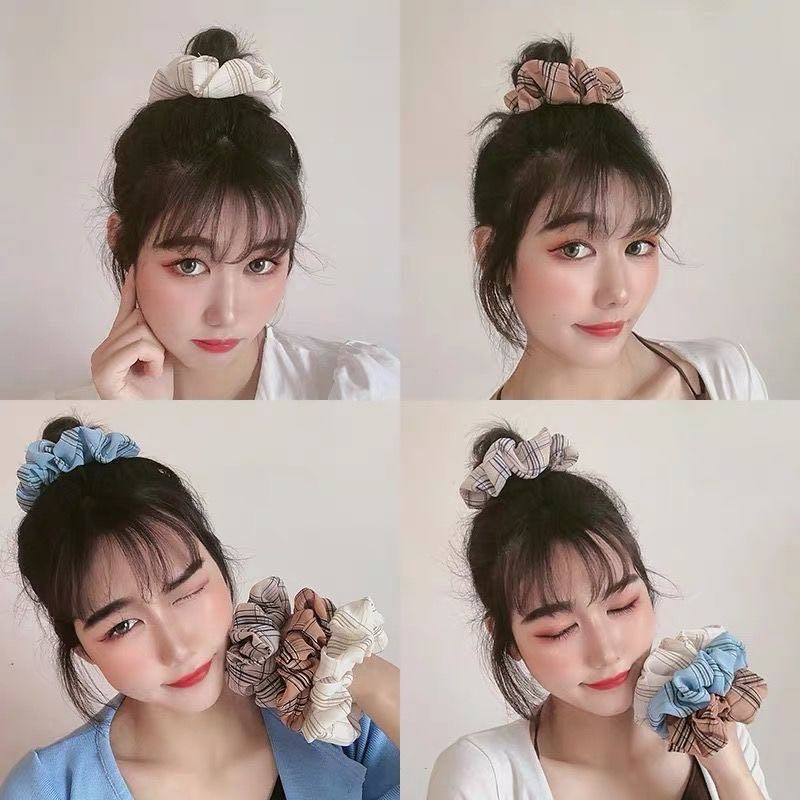 Aksesoris Fashion > Aksesoris Rambut > Ikat Rambut, Pita & Scrunchie > [COD] IKAT RAMBUT SCRUNCHIE SATIN IMPORT ALA KOREA MOTIF KOTAK IKAT RAMBUT WANITA