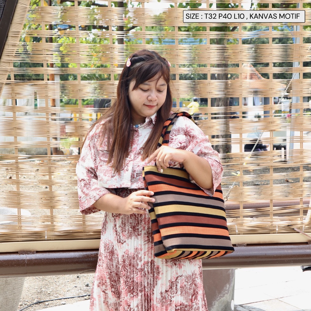 Detail COD in SAJA Totebag fashion krem tali kanvas motif gadis kepang Tas Kuliah dan Pergi Jalan Jalan