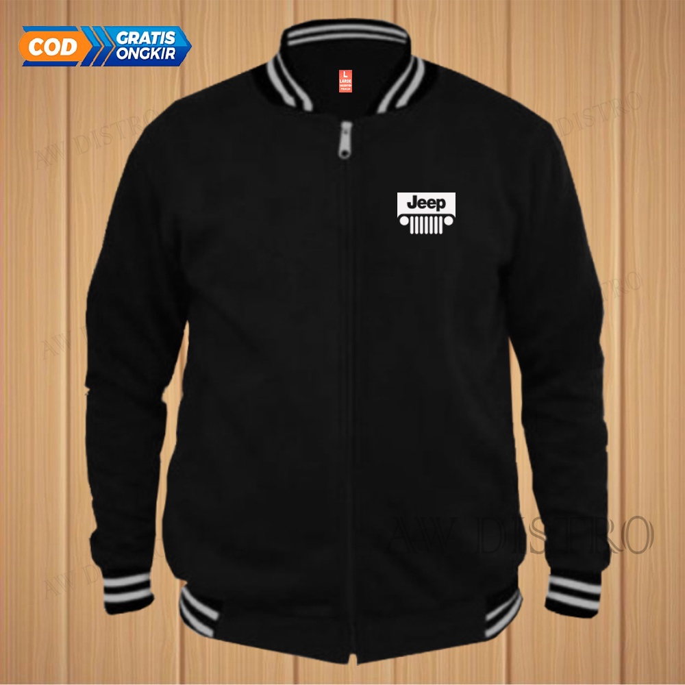 Detail COD Jaket Baseball Varsity Distro Jeep Text Putih Premium Quality