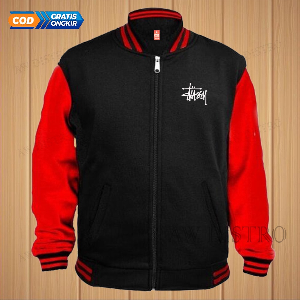 Detail COD Jaket Baseball Varsity Distro STS Text Putih Premium Quality