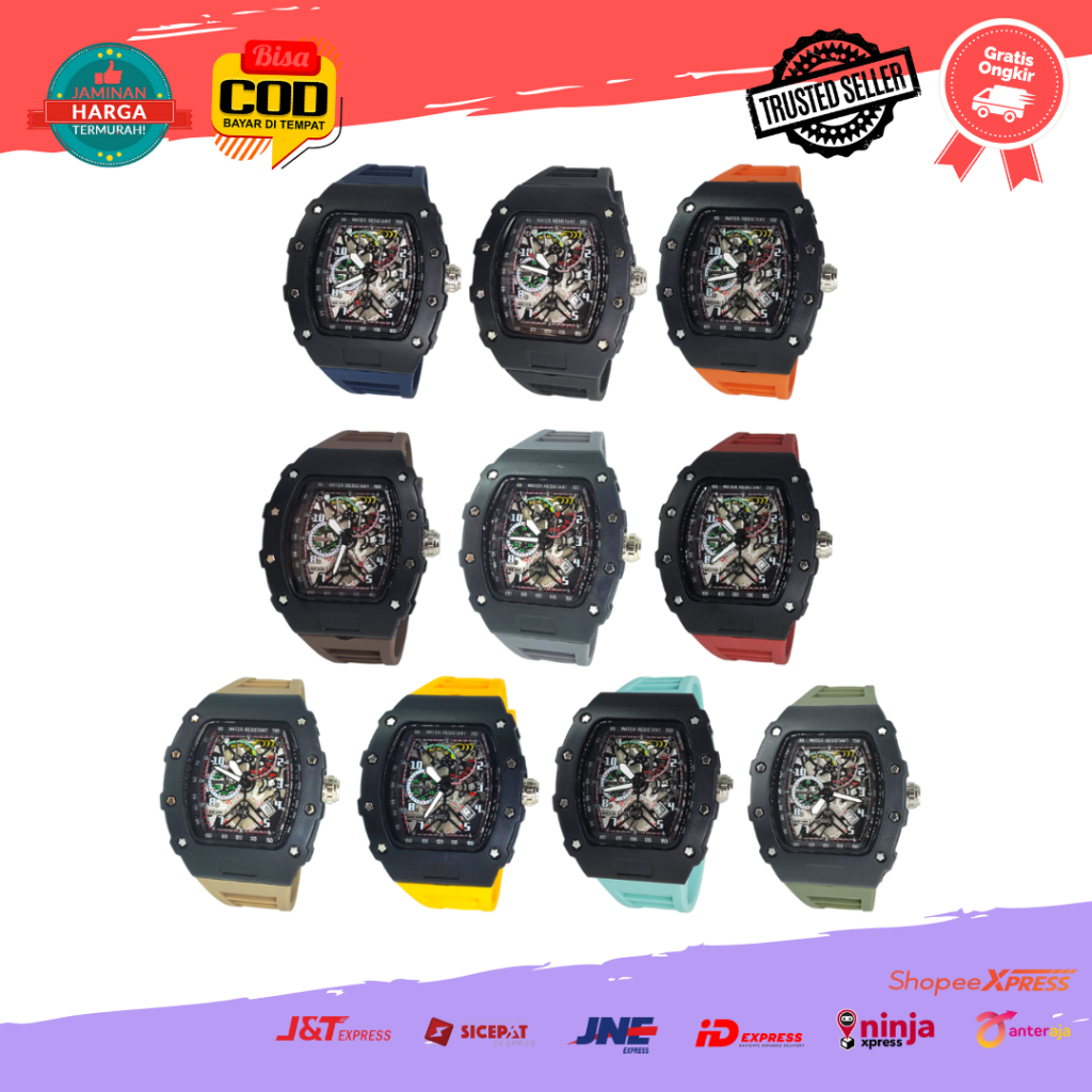 Genre : Analog Diameter : 5 cm Tahan Air : Ya (cuci tangan, hujan) Power: Baterai Bahan Strap : Karet / Rubber