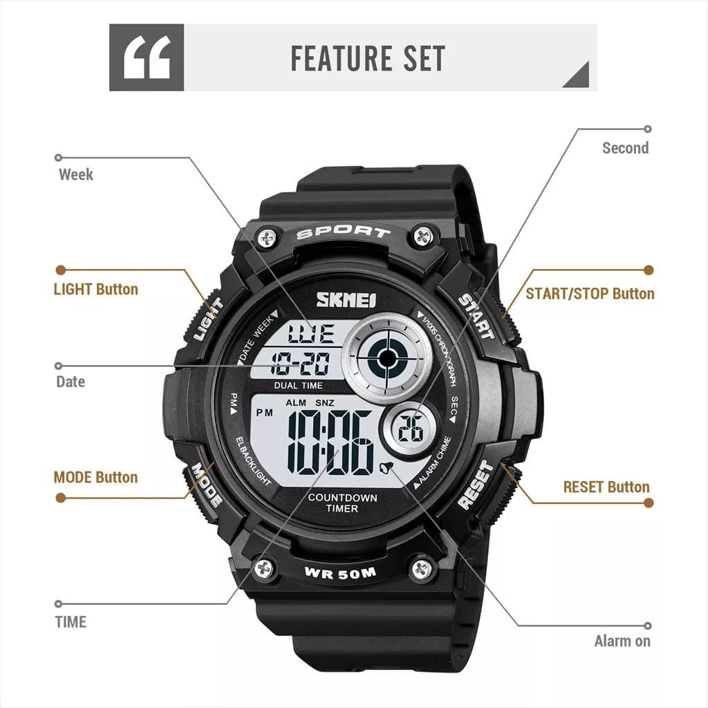 Detail [COD] Jam Tangan Remaja Pria SKMEI Digital Sporty Stopwatch Alarm Tanggal Hari Water Rsist / Tahan Air