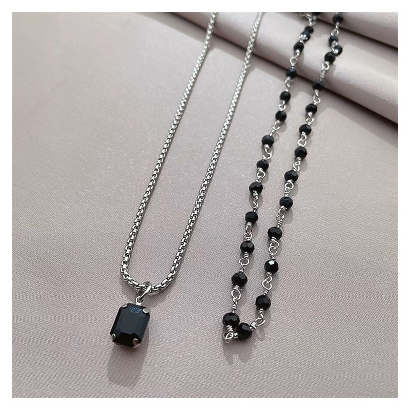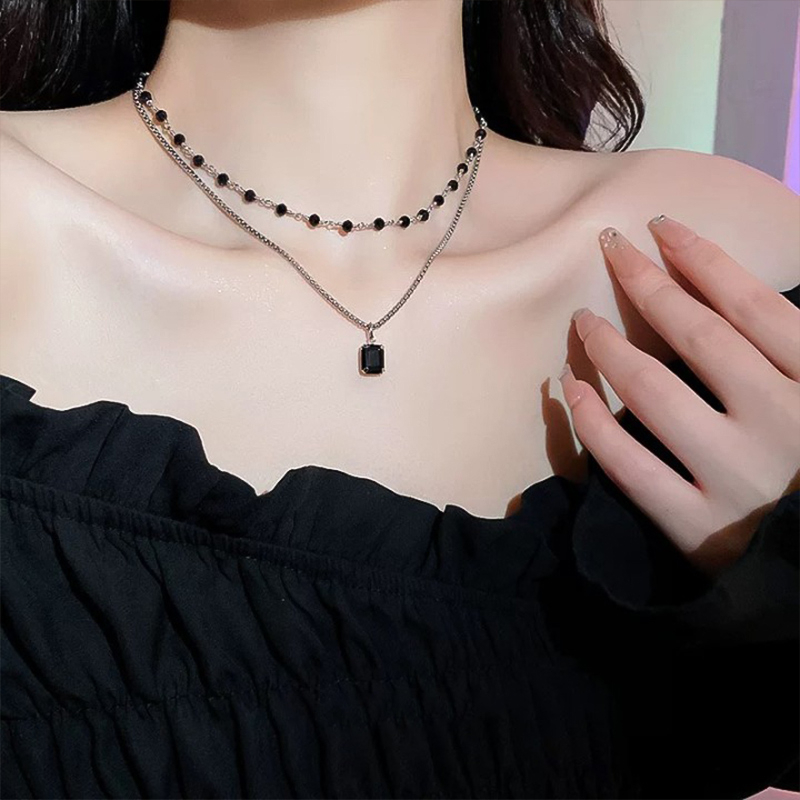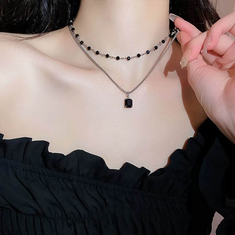 Ciri-ciri Lapisan ganda, Manik-manik, Dingin, Fashion, Indah, Liontin Zirkon Persegi Kualitas: Kalung berlapis dibuat paduan untuk memastikan panjang tanpa luntur, bebas nikel, bebas timah, dan hipoalergenik. Halus dan Mungil: Kalung ini sederhana keren dan modis dengan desain berlapis ganda. Desain: Lapisan pertama dimanik-manik dengan manik-manik hitam dan bening, lapisan kedua dirancang dengan rantai manik-manik logam dan liontin zirkon.