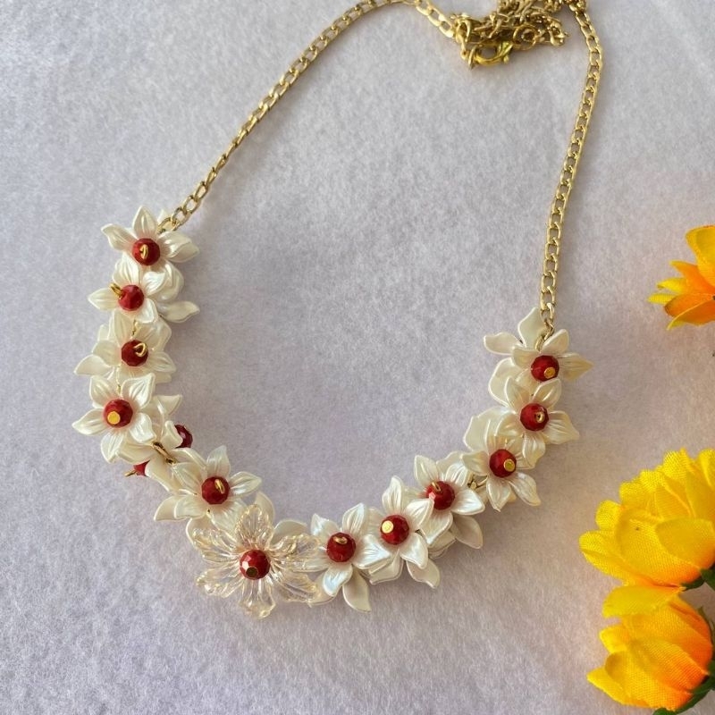 Detail [COD] KALUNG KOREA HIJAB FASHION KALUNG CHOKER MUTIARA BUNGA CRYSTAL BEADS KALUNG KONDANGAN