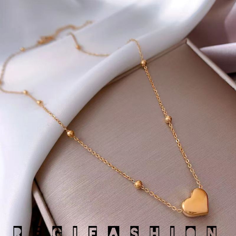 Aksesoris Fashion > Kalung > Rantai & Link > { COD } Kalung Titanium Wanita Korea Liontin Love Bentolan / Kalung Wanita Korea Model Terbaru Anti Karat Tidak Luntur