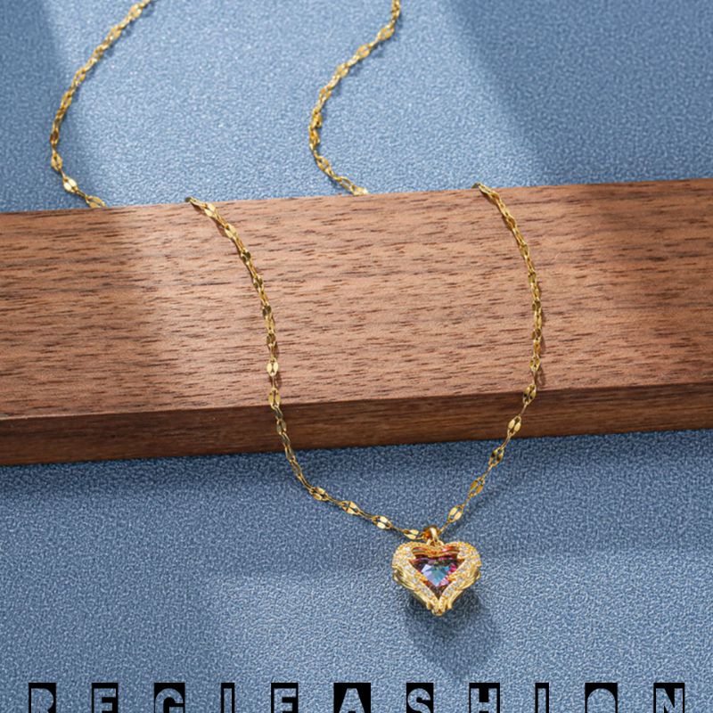 Aksesoris Fashion > Kalung > Rantai & Link > { COD } Kalung Titanium Wanita Terbaru Liontin Love Cristal / Kalung Rantai Wanita Titanium Asli Import / Kalung Wanita Korea Model Terbaru