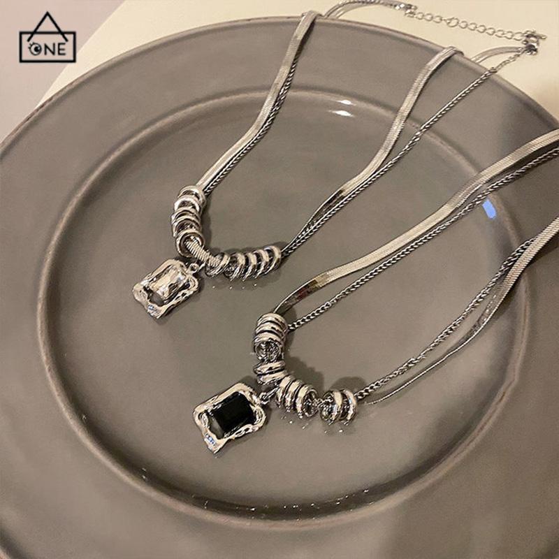 Detail COD❤️Kalung Wanita Square Zircon Lapisan Ganda Rantai Hip Hop Musim Dingin Musim Gugur Desain Sense-A.one