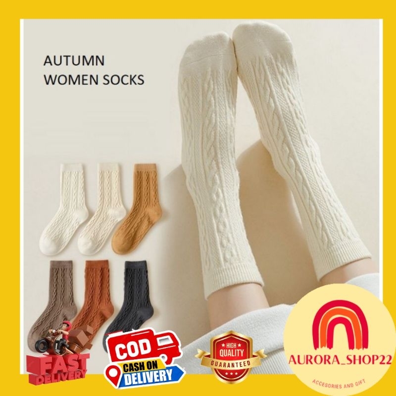 [COD] KAOS KAKI PANJANG WANITA RAJUT IMPORT CUTE ALA KOREA KAOS KAKI KNIT PANJANG KAOS KAKI HITAM PUTIH DI ATAS MATA KAKI IMPORT TEBAL PREMIUM