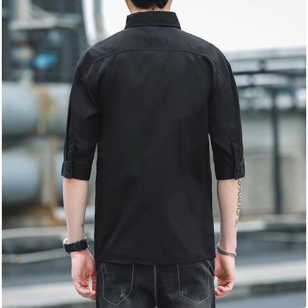 Detail [COD]Kemeja pria hijau Kemeja pria lengan pendek polos Kemeja batik korea motif oversize Kemeja murah cowok kasual Kemeja katun kemeja pria jumbo 2023