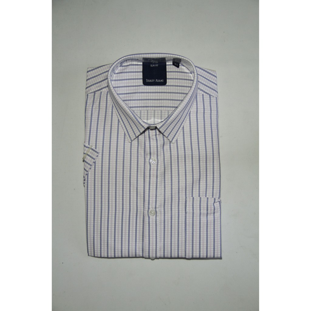 Kemeja Formal STANLEY ADAMS Lengan Pendek Putih Salur 2 Motif Merk : STANLEY ADAMS Tipe Lengan : Lengan Pendek Model : Slimfit Formal Bahan : Katun Motif : Sesuai Gambar / Real Pict