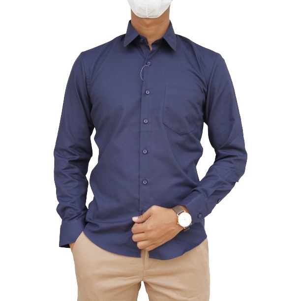 Detail COD Kemeja Pria Stanley Adams Lengan Panjang Biru Navy 02 Slimfit 100% Original Brand
