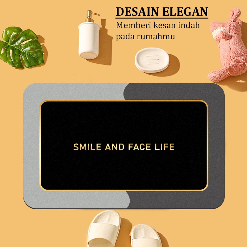 FITUR : ▪️ Motif elegan yang dihasilkan dengan cara printing ▪️ Pilihan warna menarik ▪️ Alas anti slip ▪️ Cocok diletakkan pada pintu depan, dapur maupun kamar mandi untuk menghiasi rumah Anda.