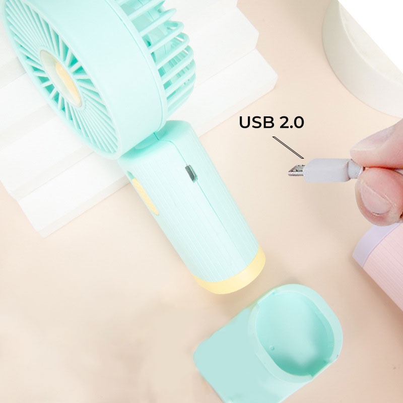 Kipas angin mini portable dengan beberapa warna ini memiliki desain yang berbentuk lucu dan unik, sehingga memudahkan Anda menggunakan di tengah perjalanan saat cuaca panas. Kipas portable ini juga memiliki baterai yang bisa diisi ulang (dapat dicharge), dan mampu menghasil angin yang sejuk di saat Anda kegerahan. Kipas ini juga memiliki Penyangga untuk meletakkan handphone