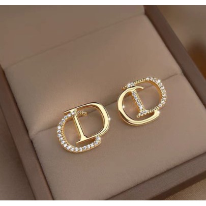 Aksesoris Fashion > Anting > 【COD】Korea Desain Fashion Anting Alfabet Anting Tusuk Sterling Silver 925 Desain Tulisan CD Hias Berlian Gaya Korea / Simple Untuk Wanita