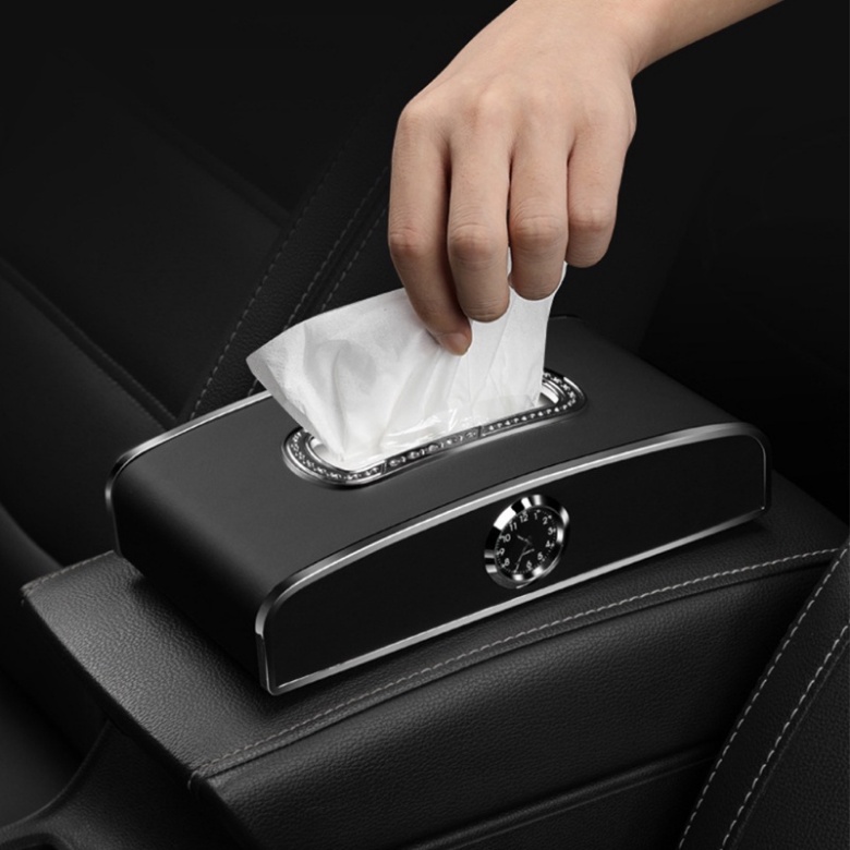 Perlengkapan Rumah > Organizer Rumah > Box, Tas, & Keranjang Penyimpanan > 【COD】Kotak Penyimpanan Gantungan Tisu Mobil Premium Mewah Multifungsi Jam Car Tissue Box