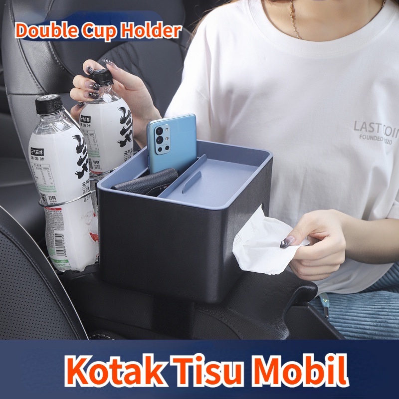 【COD】Kotak Tisu Mobil Multifungsi/Mobil Multifungsi Storage Box/Botol Minum Storage Mobil Kotak Tisu/Kotak Tisu Multifungsi Dengan 2 Cup Holder