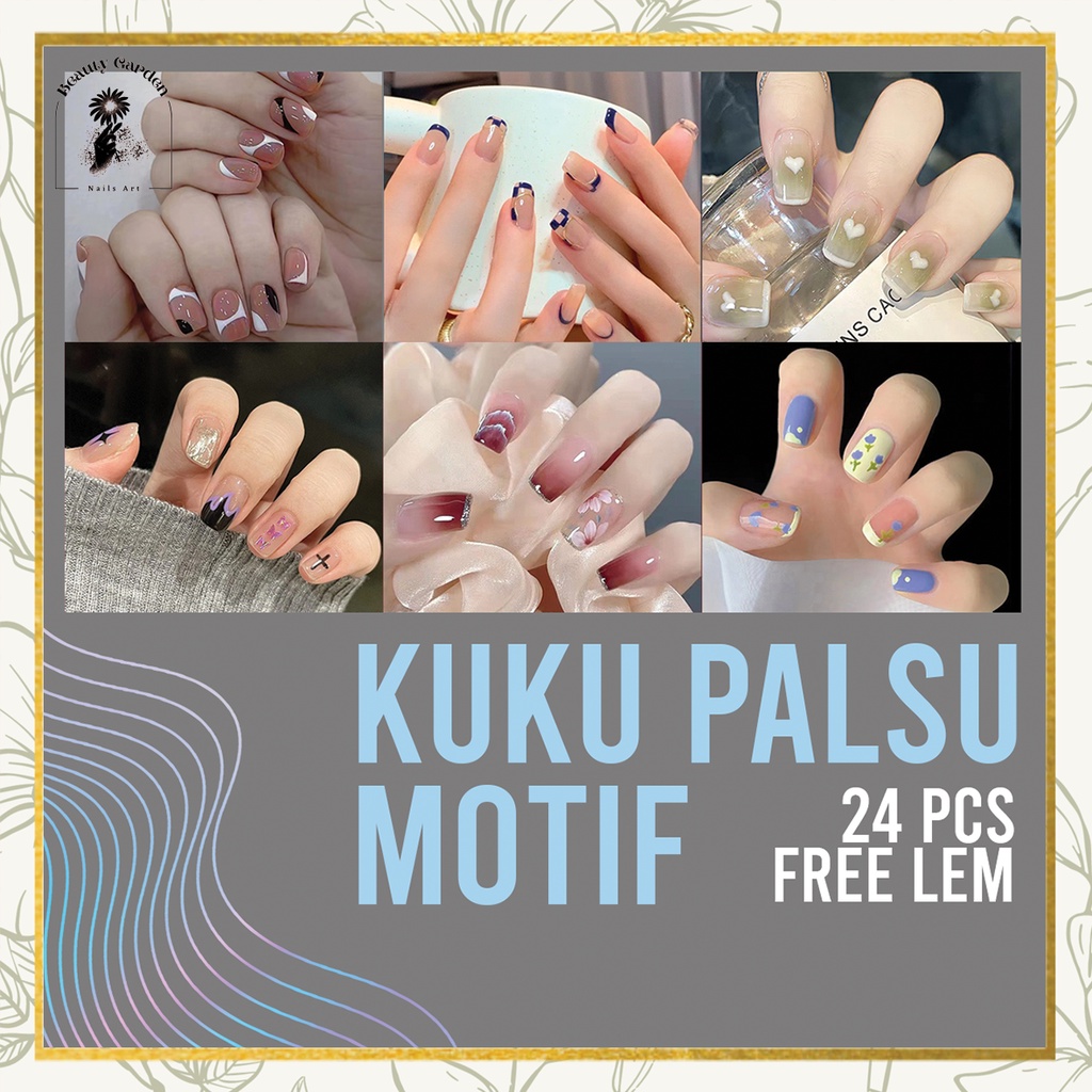 Kuku Palsu isi 24Pcs Free Lem Cair 2gr dengan motif cute/Long Nails Disetiap isi 24pcs sudah ada ukuran kuku palsu manusia umumnya. Pemakaian tahan 3/4 hari.