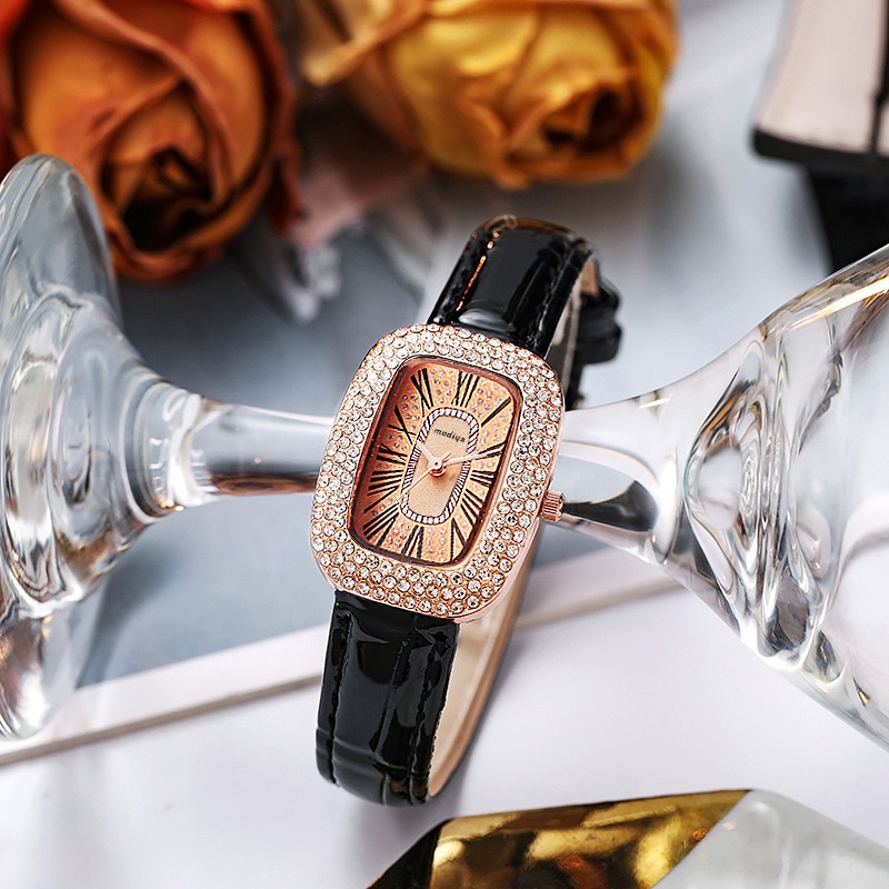 Detail ✅COD [KUMA] Jam Tangan Wanita Analog Strap Pu Dial Kotak Aksen Berlian Imitasi JT-38