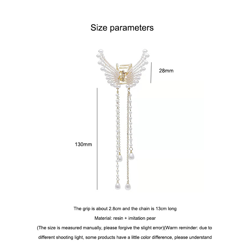 Spesifikasi Bahan: Resin, Mutiara Imitasi Ukuran Produk: Klip: 2.8cm, Panjang Rumbai: 13cm