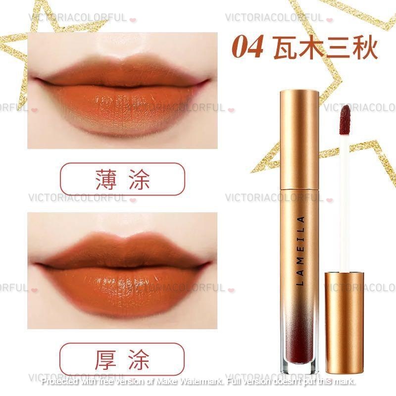 Nama Produk: Lipstik pelembab dan pelembab Merek produk: LAMEILA Warna produk: 6 warna Jenis produk: lip gloss, lip glaze Model produk: 1021 Berat produk: 24g Isi bersih: 2.8g Ukuran produk: 2 * 2 * 12cm Umur simpan: 3 tahun Khasiat produk: warna yang kaya, tahan air dan tahan lama