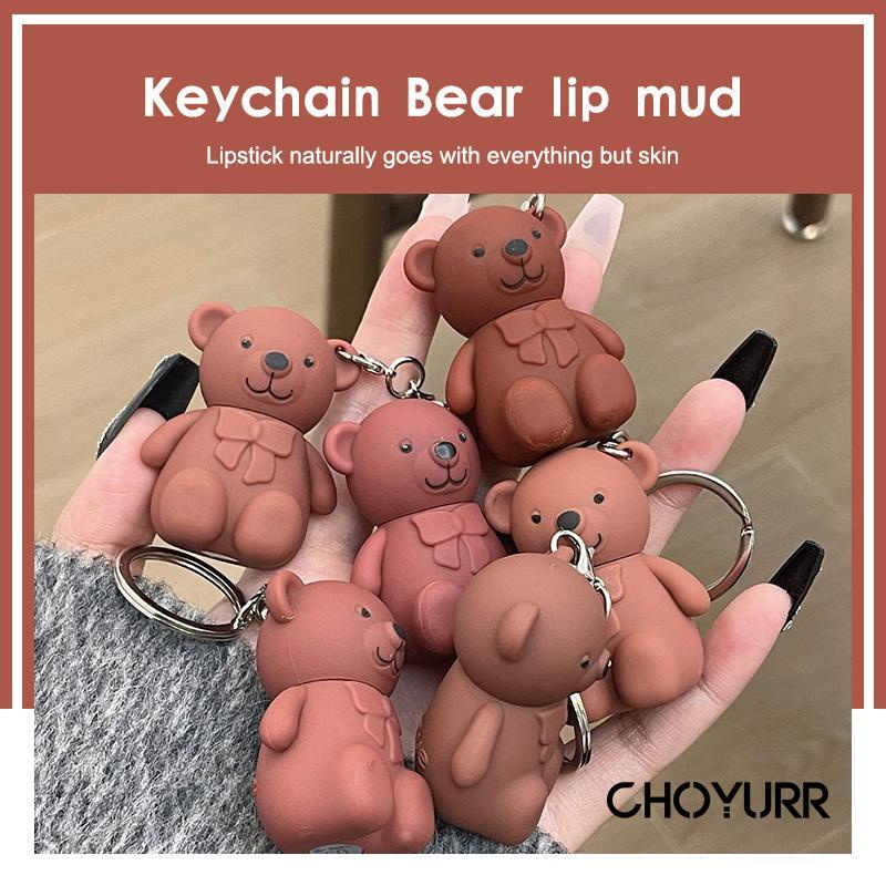 Gantungan Kunci Beruang Bibir Tanah Liat Mencerahkan Warna Alami Matte Pemutih Bibir Glasir