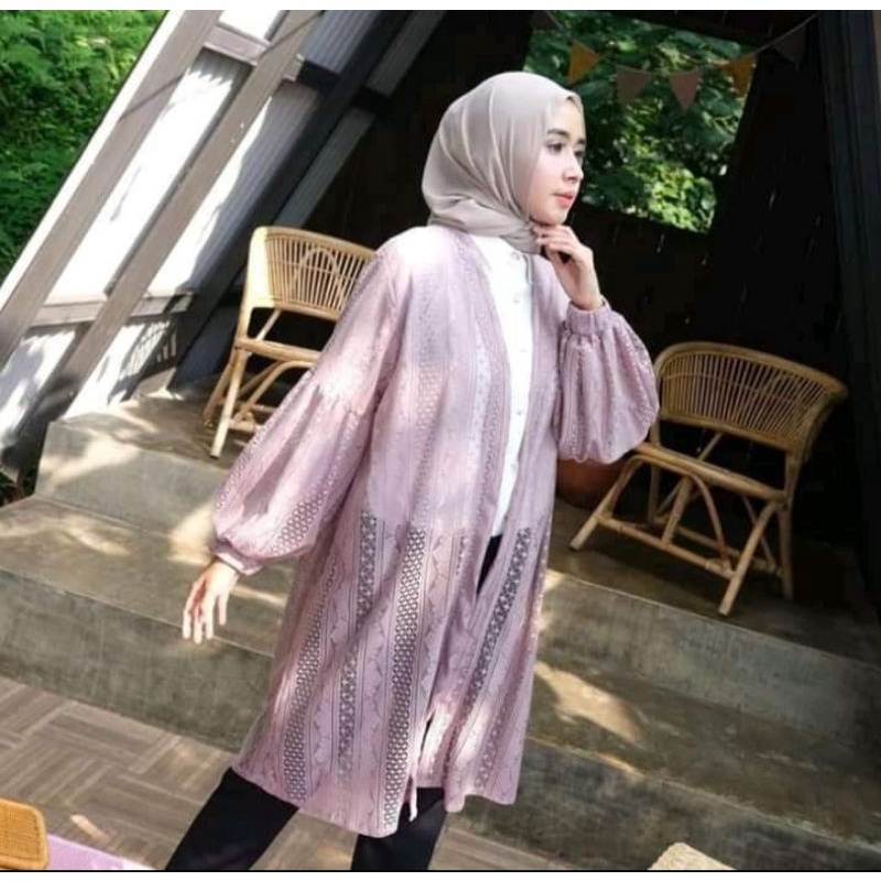 long cardy atau outer brukat ini lg bomming banget loh. terbuat dr bahan brokat import halus dan ringan, ld 100 pj 90-95cm karena outer bisa di pakai juga buat sista gemoy cocok di mix dg kaos, kemeja dan gamis ready banyak warna Happy shopping