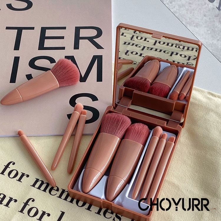 Portable Makeup Brush Set Cermin Mini Multi-Fungsi Bedak Alas Bedak Eye Shadow Smudge Brush