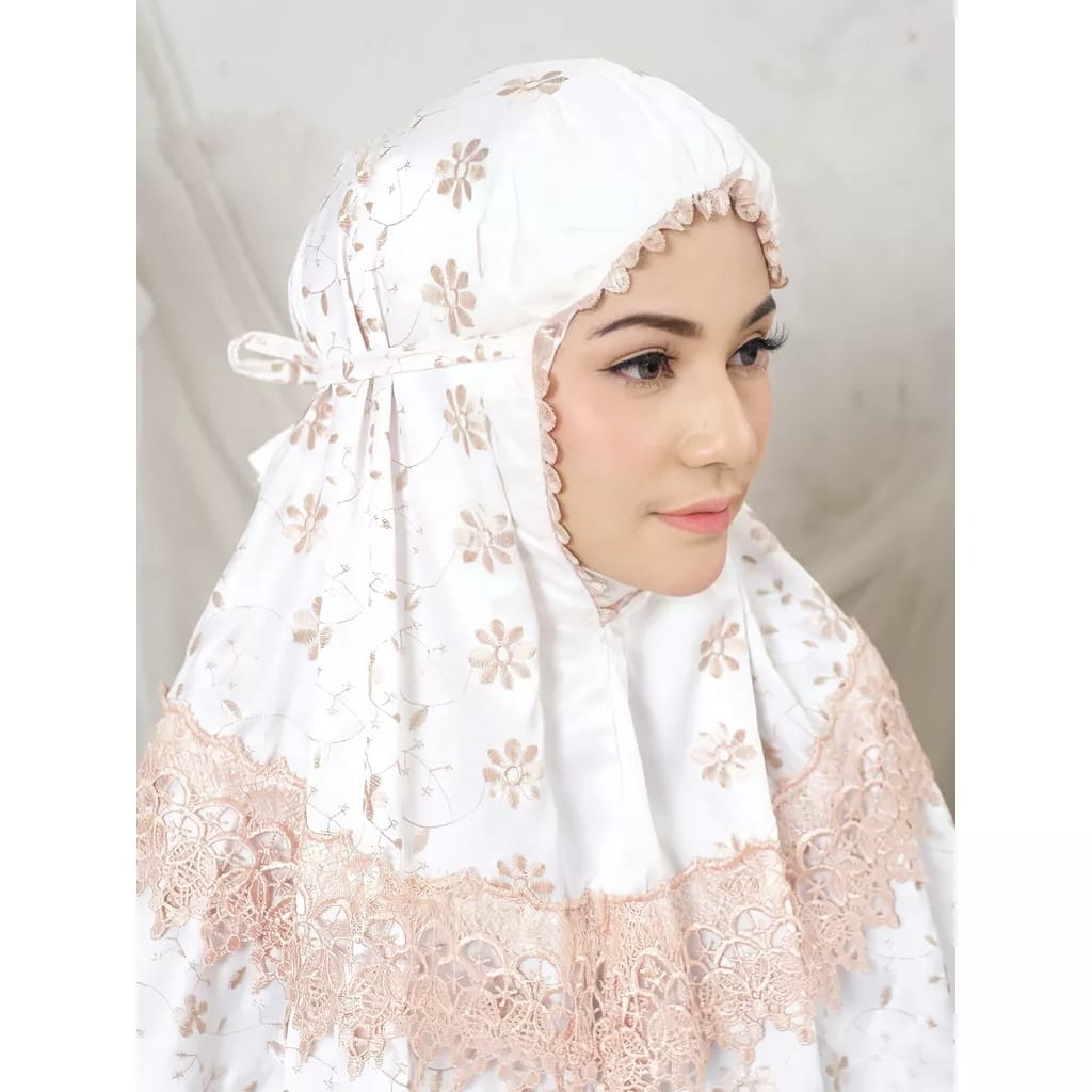 Detail COD MUKENA RENDA KEONG PRADA SUTRA MILO PARIS FULL BORDIR WARNA MUKENA JUMBO