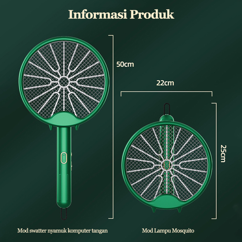 Titik penjualan: - Tiga lapis perlindungan jaringan, hanya nyamuk listrik dan bukan manusia; - pegangan yang nyaman; - Nyamuk fisik murni, dapat melepaskan tegangan tinggi seketika hingga 3000V; - dapat digantung dan disimpan, menghemat ruang; - Sakelar ganda untuk pengendalian nyamuk yang aman; - Baterai lithium 800mAh internal, terisi penuh hingga 15 - 30 hari penggunaan terus menerus - Dapat digunakan sebagai raket nyamuk dan perangkap nyamuk, sangat multifungsi. - Di lengkapi dengan LED UV Light untuk mengundang serangga atau nyamuk. - Design yang praktis,modern dan ringan.