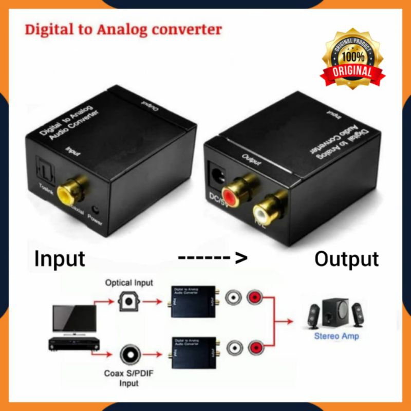 Converter ini digunakan untuk mengubah signal Digital Optical ataupun Coaxial ke Analog/RCA, sehingga suara TV/Bluray dapat disalurkan melalui ampli stereo/speaker active tanpa perlu menggunakan home theater untuk kualitas suara yang pasti jauh lebih baik.