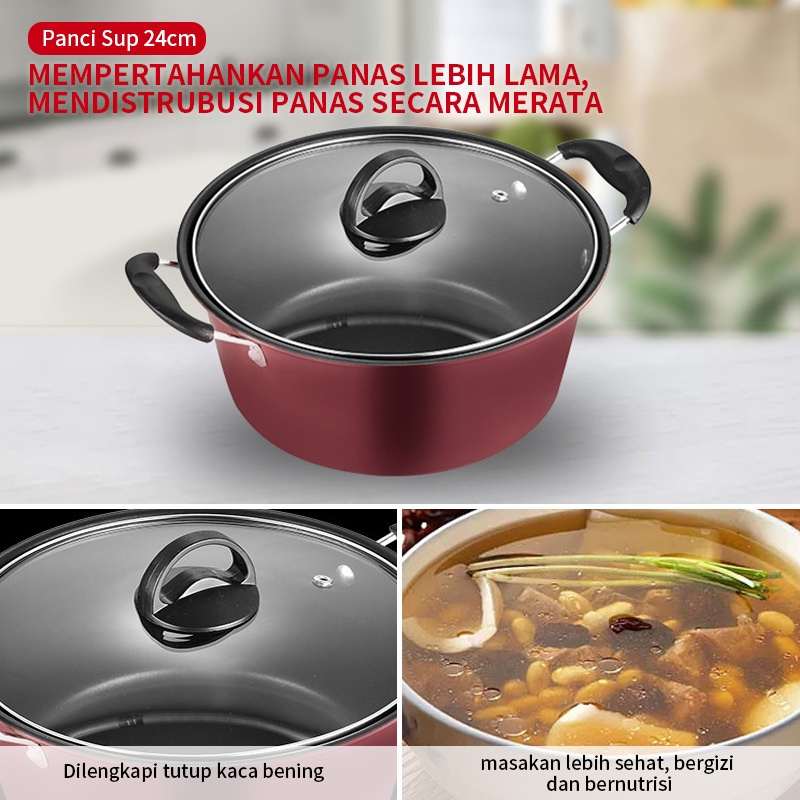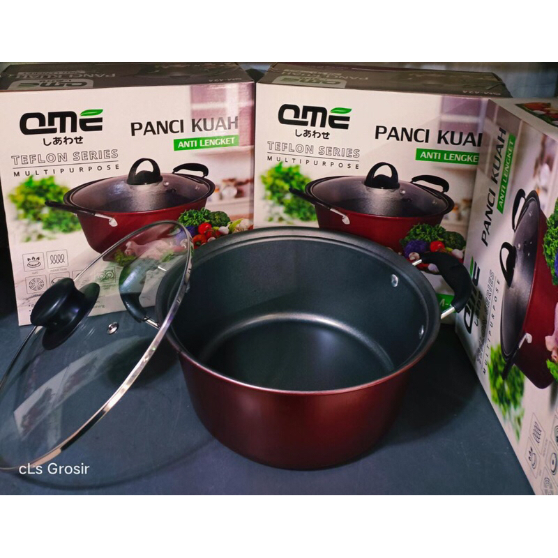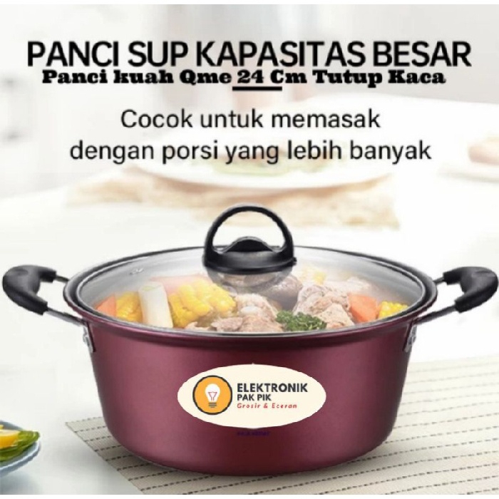 QME Panci Kuah Teflon Anti Lengket 24 CM Tutup Kaca / Panci Rebus Teflon Non-Stick