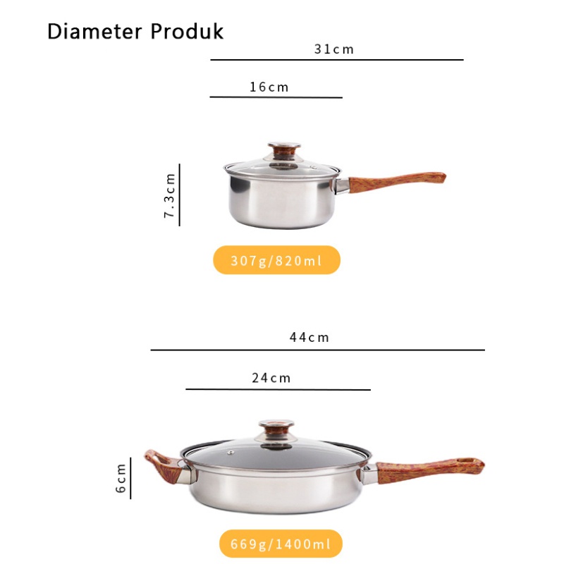Keunggulan : - Membantu mengolah makanan dengan tingkat kematangan yang cukup - Gagangnya anti panas terbuat dari kayu - Berbahan stainless steel yang tebal dan berkualitas tinggi - Dilengkapi dengan teko air yang cantik - Berbagai macam varian panci, bebas pakai sesuai keinginan dan kebutuhan