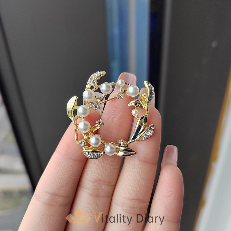 ✨Selamat datang di Vitality Store ✨ ----------------------------------------------------- Temperamen Simple Pearl Leaf Bros Wanita Serbaguna Pakaian Luar Cardigan Jas Indah Pin