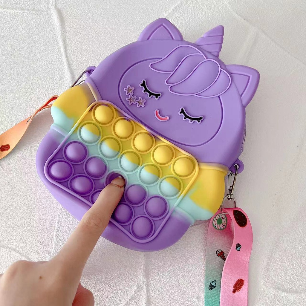 Fashion Bayi & Anak > Tas Anak Laki-Laki > Tas Selempang & Bahu > 【COD】Pop it Rainbow Unicorn Cross Bag Stress Relieve Fidget Toy Fashion Children Push Bubble Handbag