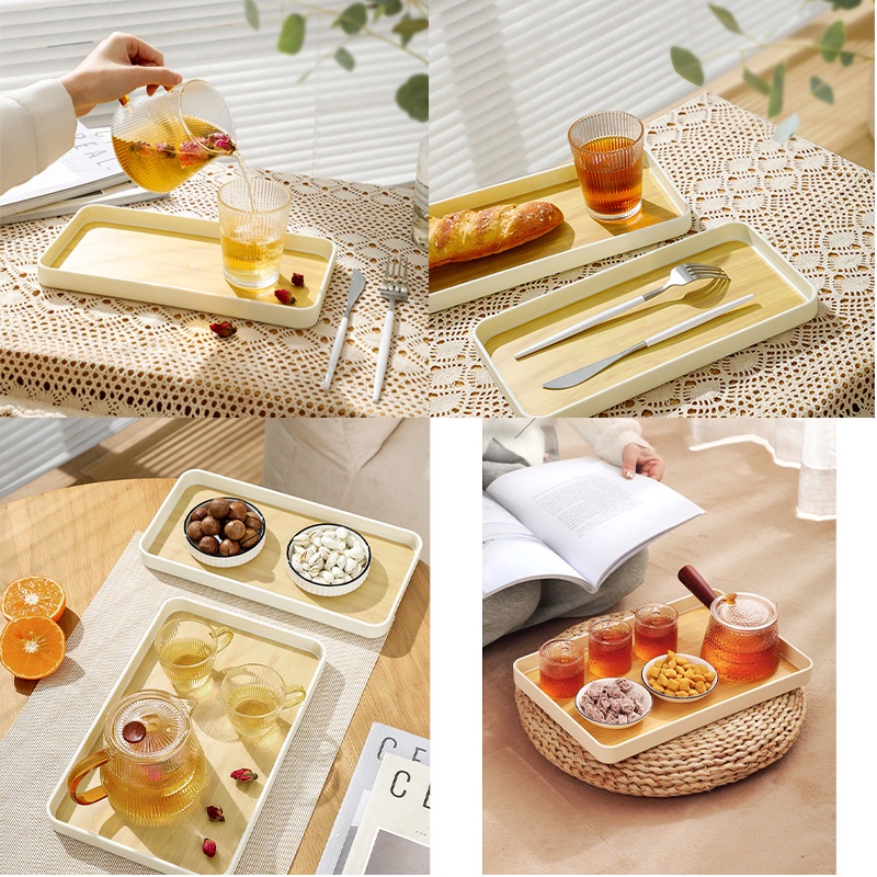 Detail 【COD】Rectangle Tray Tatakan Persegi/Nampan Estetik Tatakan/Nampan Kayu Tatakan/Nampan Saji Bahan Kayu/Tatakan Estetik