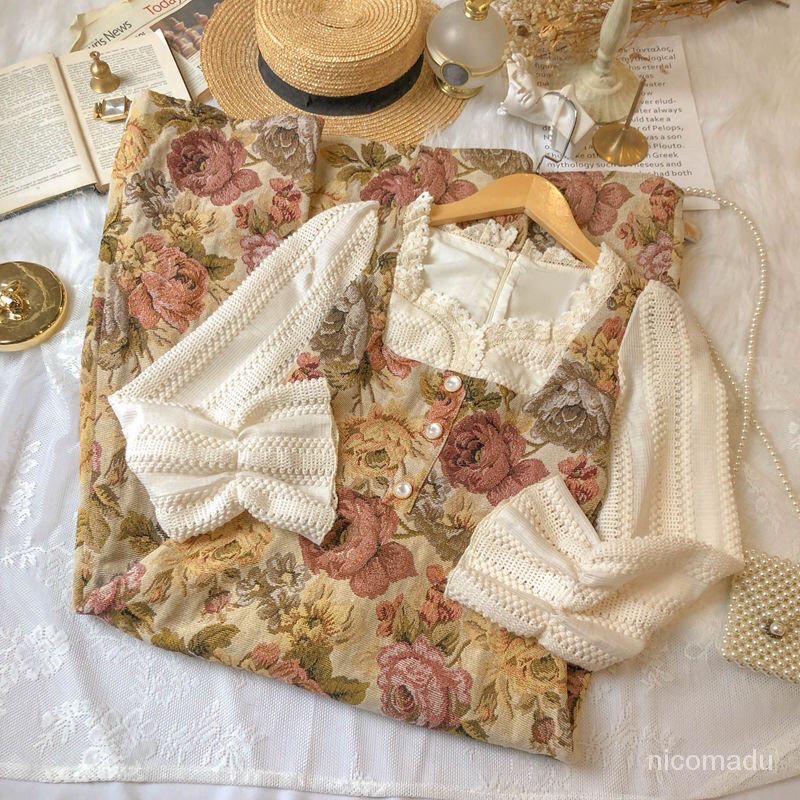 Detail COD##rok bunga korea/bohemian dress/French Vintage Dress Floral Korean Long Dress