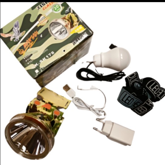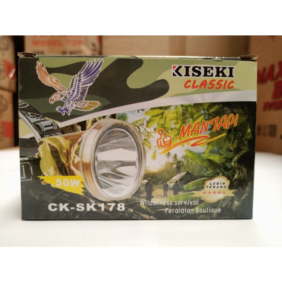 Detail COD Senter Kepala 50 Watt Kiseki CK-SK178Bonus Bohlamp Lampu Headlamp Cahaya Putih model army