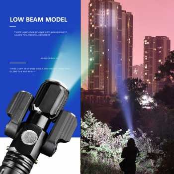 Features CREE XM-L T6 + 2 x XPE Senter KS-738 menggunakan 3 buah chip LED yaitu 1 buah CREE XM-L T6 dan 2 buah XPE pada bagian kiri dan kanan. Saat dinyalakan secara bersamaan dapat menghasilkan cahaya super terangan mencapai 15000 Lumens. Terdapat 4 mode senter yaitu 1 light on - 2 lights on - 3 lights on - 3 lights Strobe .