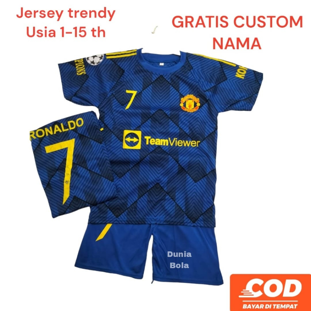 Detail COD / SETELAN BAJU BOLA TERBARU 2023 KAOS ANAK LAKI LAKI TERMURAH PAKAIAN OLAHRAGA SEPAKBOLA KAOS FUTSAL RONALDO BLUE CUSTOM NAMA FREE