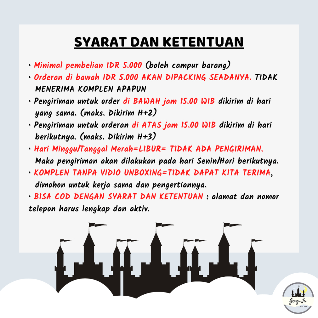 • Orderan di bawah IDR 5.000 AKAN DIPACKING SEADANYA. TIDAK MENERIMA KOMPLEN APAPUN