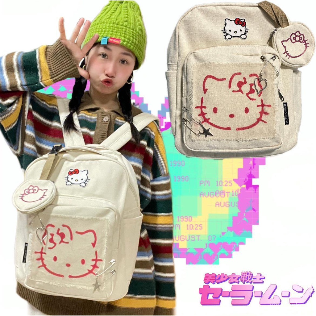 Tas Wanita > Ransel Wanita > [✅BISA COD] #Sisjuly# Tas Y2K wanita / tas bahu gaya perguruan tinggi tambalan retro retro / tas sekolah perjalanan ransel wanita berkapasitas besar