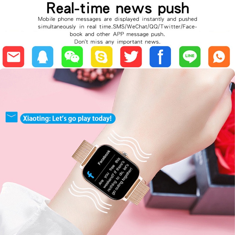 Handphone & Aksesoris > Perangkat Wearable > Smartwatch & Fitness Tracker > COD Smartwatch Q13 Watch Women Smart Watch Men 2022 Sport Fitness Watch Heart Rate Monitor Waterproof Bluetooth Music Control Function Bluetooth Call Calls Reminder Social APP Reminder Smartwatch (In Stock)