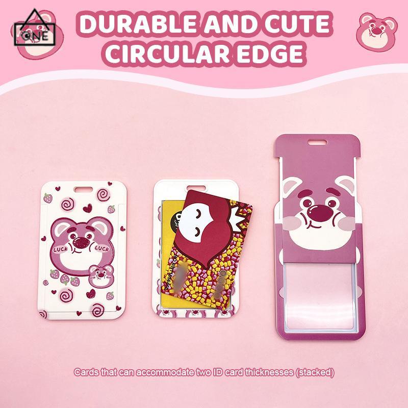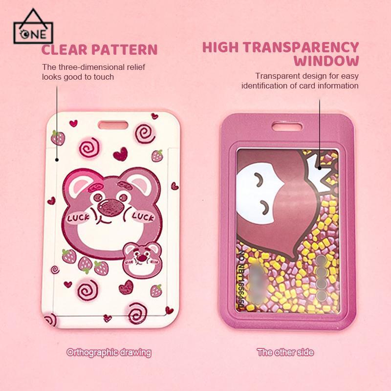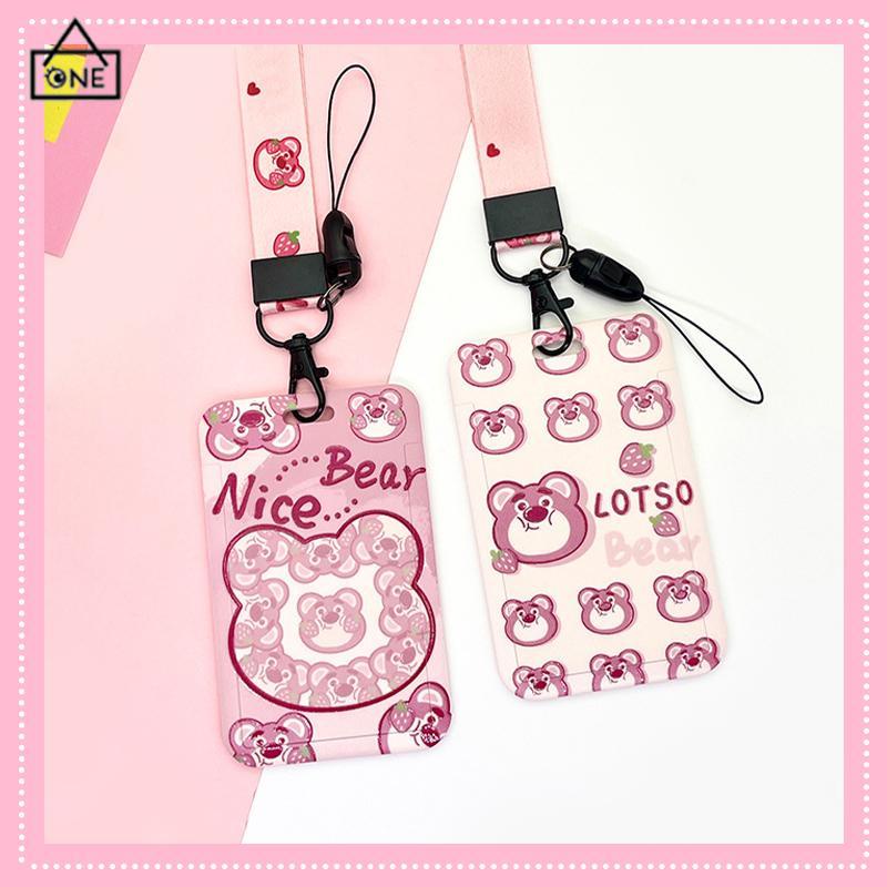 Buku & Alat Tulis > Perlengkapan Sekolah & Kantor > Lanyard & Name Tag > COD❤️Strawberry Bear Slid Cover Plastik Kartun Set Kartu Mahasiswa Kampus Kartu Tali Panjang Pelindung-A.one